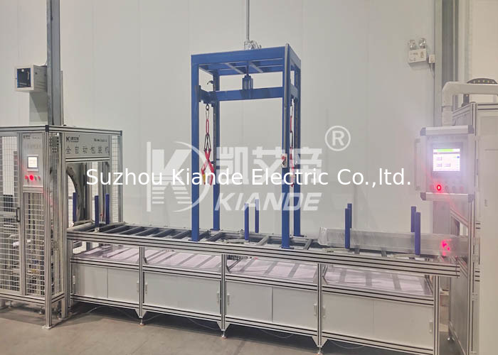 تتكون آلة فحص القضبان الأوتوماتيكية من ثلاثة أجزاء ومحطة موضع التغذية ومحطة الفحص ومحطة التفريغ.عندما يدخل قضيب التوصيل إلى الموضع الثابت ، سيحدد نظام التحكم أداة الاختبار المناسبة وفقًا للرمز الشريطي أو محطة التجميع السابقة لبدء اختبارات تحمل الجهد العالي ومقاومة العزل والتأريض ، وتحديد ما إذا كان مؤهلاً وإنشاء تقرير اختبار.يمكن حفظ هذا التقرير وطباعته في الموقع وتخزينه عن بُعد وما إلى ذلك. ويمكن ضبطه وفقًا لمتطلبات العميل.